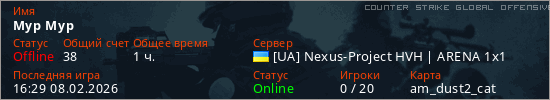 Играет на Counter Strike Global Offensive сервере. Страна: УкраинаПервый раз замечен 14:45 30.01.2026