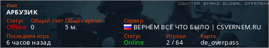 Играет на Counter Strike Global Offensive сервере. Страна: РоссияПервый раз замечен 21:13 13.03.2026