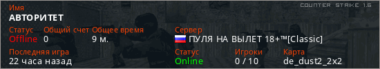 Последний раз был в сети 20 часов назад Игрок с таким ником замечен на 13 серверах