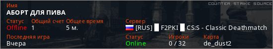 Играет на Counter Strike Source сервере. Страна: РоссияПервый раз замечен 19:55 24.12.2025