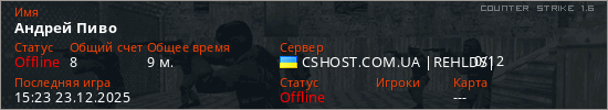 Играет на Counter Strike 1.6 сервере. Страна: УкраинаПервый раз замечен 22:13 18.12.2025