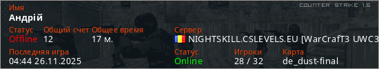 Играет на Counter Strike 1.6 сервере. Страна: РумынияПервый раз замечен 16:42 17.11.2025