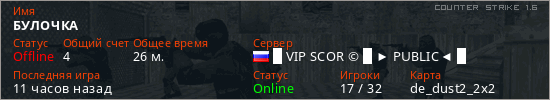 Последний раз был в сети Час назад Игрок с таким ником замечен на 15 серверах