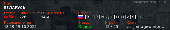 Последний раз был в сети 18:29 29.10.2025 Игрок с таким ником замечен на 10 серверах