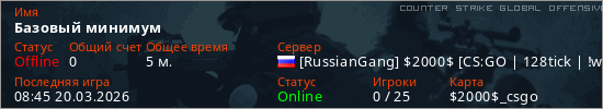 Играет на Counter Strike Global Offensive сервере. Страна: РоссияПервый раз замечен 07:54 20.03.2026