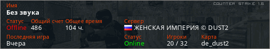 Последний раз был в сети Вчера Игрок с таким ником замечен на 11 серверах