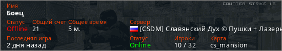 Последний раз был в сети 2 дня назад Игрок с таким ником замечен на 10 серверах