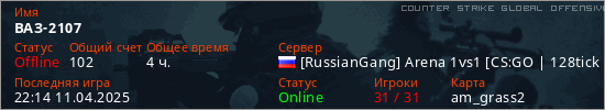 Играет на Counter Strike Global Offensive сервере. Страна: РоссияПервый раз замечен 16:48 02.03.2025