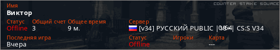 Играет на Counter Strike Source сервере. Страна: РоссияПервый раз замечен 11:38 26.12.2025