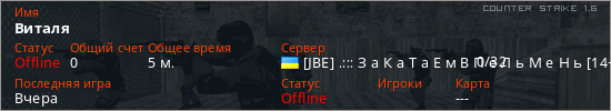 Последний раз был в сети Вчера Игрок с таким ником замечен на 29 серверах