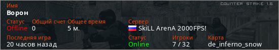 Последний раз был в сети 15 часов назад Игрок с таким ником замечен на 15 серверах