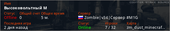 Последний раз был в сети Вчера Игрок с таким ником замечен на 2 серверах
