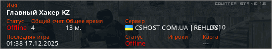 Играет на Counter Strike 1.6 сервере. Страна: УкраинаПервый раз замечен 21:59 16.12.2025