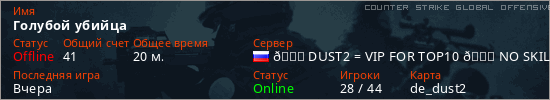 Играет на Counter Strike Global Offensive сервере. Страна: РоссияПервый раз замечен 19:05 04.03.2026