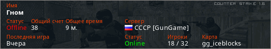 Последний раз был в сети Вчера Игрок с таким ником замечен на 17 серверах