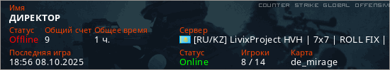 Играет на Counter Strike Global Offensive сервере. Страна: КазахстанПервый раз замечен 16:37 30.01.2025