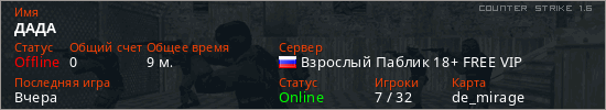 Последний раз был в сети Вчера Игрок с таким ником замечен на 8 серверах