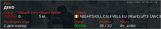 Последний раз был в сети 2 дня назад Игрок с таким ником замечен на 16 серверах