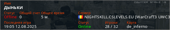 Играет на Counter Strike 1.6 сервере. Страна: РумынияПервый раз замечен 19:03 12.08.2025