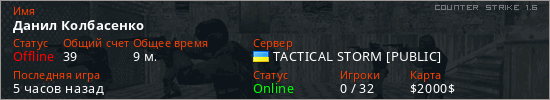 Играет на Counter Strike 1.6 сервере. Страна: УкраинаПервый раз замечен 00:38 17.02.2026
