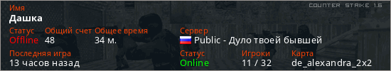 Последний раз был в сети 11 часов назад Игрок с таким ником замечен на 13 серверах