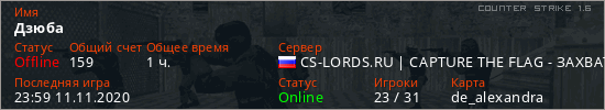 Последний раз был в сети 23:59 11.11.2020 Игрок с таким ником замечен на 5 серверах
