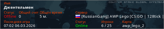 Играет на Counter Strike Global Offensive сервере. Страна: РоссияПервый раз замечен 06:58 06.03.2026