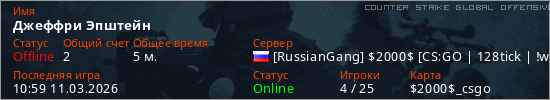 Играет на Counter Strike Global Offensive сервере. Страна: РоссияПервый раз замечен 10:57 11.03.2026