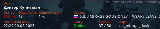 Играет на Counter Strike Global Offensive сервере. Страна: РоссияПервый раз замечен 00:14 29.03.2025