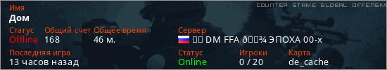 Играет на Counter Strike Global Offensive сервере. Страна: РоссияПервый раз замечен 10:53 14.02.2026