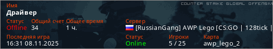 Играет на Counter Strike Global Offensive сервере. Страна: РоссияПервый раз замечен 10:35 23.03.2025