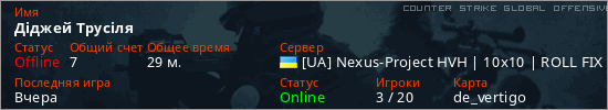 Играет на Counter Strike Global Offensive сервере. Страна: УкраинаПервый раз замечен 13:09 04.04.2026