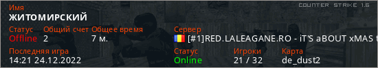 Играет на Counter Strike 1.6 сервере. Страна: РумынияПервый раз замечен 14:17 24.12.2022