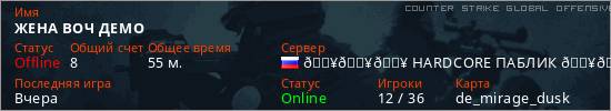 Играет на Counter Strike Global Offensive сервере. Страна: РоссияПервый раз замечен 12:06 15.03.2026