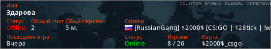 Играет на Counter Strike Global Offensive сервере. Страна: РоссияПервый раз замечен 17:08 08.03.2026