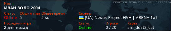 Играет на Counter Strike Global Offensive сервере. Страна: УкраинаПервый раз замечен 20:15 10.02.2026