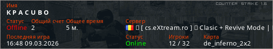 Играет на Counter Strike 1.6 сервере. Страна: РумынияПервый раз замечен 16:46 09.03.2026