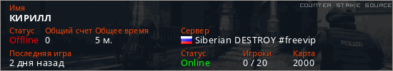 Последний раз был в сети 2 дня назад Игрок с таким ником замечен на 32 серверах