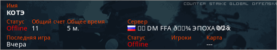 Играет на Counter Strike Global Offensive сервере. Страна: РоссияПервый раз замечен 19:31 04.03.2026