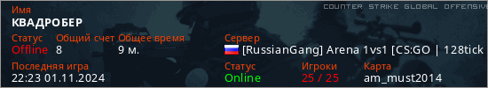 Играет на Counter Strike Global Offensive сервере. Страна: РоссияПервый раз замечен 22:07 01.11.2024