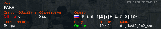 Играет на Counter Strike 1.6 сервере. Страна: РоссияПервый раз замечен 14:42 15.01.2026