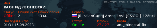 Играет на Counter Strike Global Offensive сервере. Страна: РоссияПервый раз замечен 21:42 08.09.2023