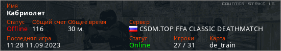 Играет на Counter Strike 1.6 сервере. Страна: РоссияПервый раз замечен 17:01 12.08.2022