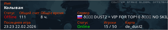 Играет на Counter Strike Global Offensive сервере. Страна: РоссияПервый раз замечен 18:20 01.04.2025