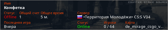 Играет на Counter Strike Source сервере. Страна: РоссияПервый раз замечен 17:40 15.01.2026