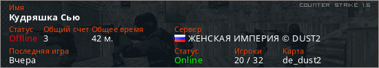 Последний раз был в сети Вчера Игрок с таким ником замечен на 3 серверах