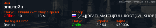 Последний раз был в сети Вчера Игрок с таким ником замечен на 3 серверах