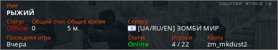 Последний раз был в сети Вчера Игрок с таким ником замечен на 11 серверах