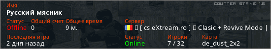 Последний раз был в сети Вчера Игрок с таким ником замечен на 18 серверах