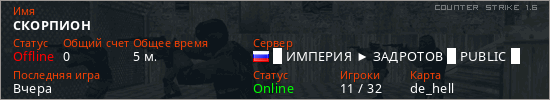 Последний раз был в сети Вчера Игрок с таким ником замечен на 8 серверах